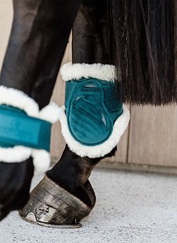 | Ногавки с иск. мехом "Vegan Sheepskin Young Horses Velvet", зад, р.L, цв. изумрудный. |