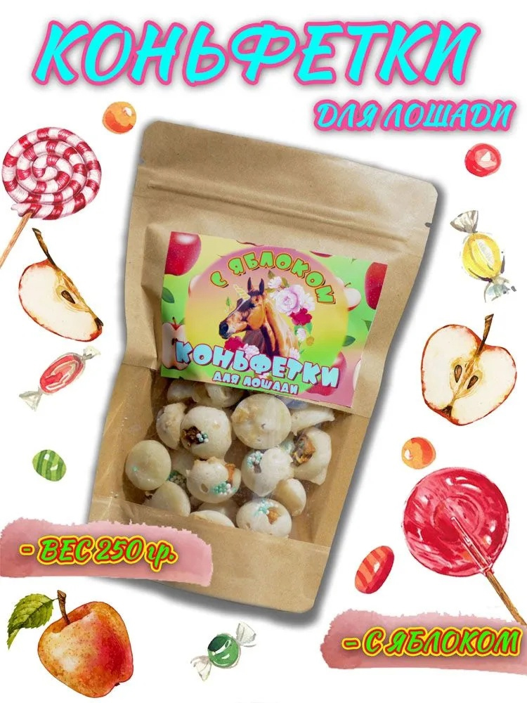 | Мини Коньфетки для лошади ручной работы "С кусочками яблок", р.250г. | 414 р. | 373 р. | В корзину |