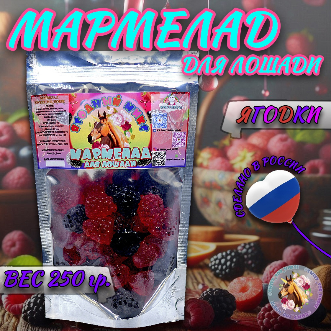 | Мармелад для лошади ручной работы "Ягодный микс", р.250г. | 450 р. | 405 р. | В корзину |
