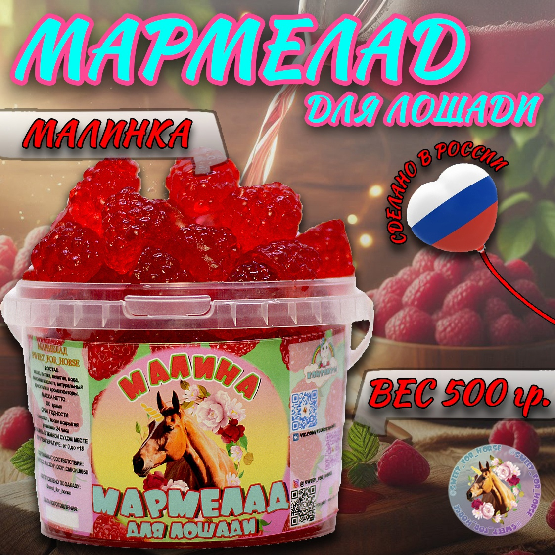 | Мармелад для лошади ручной работы "Малина", р.250г. | 450 р. | 405 р. | В корзину |